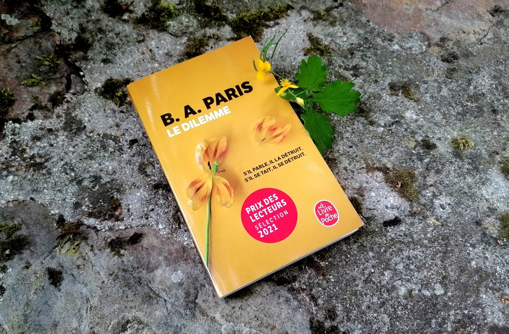 Je ne connaissais pas l’auteure, B. A. Paris, avant de recevoir la sélection de juin du Prix des lecteurs, avec son roman Le Dilemme. Sans avoir lu la quatrième de couverture, la couverture m’intriguait, notamment avec le sous-titre S’il parle, il la détruit. S’il se tait, il se détruit. Mystérieux, tout cela…