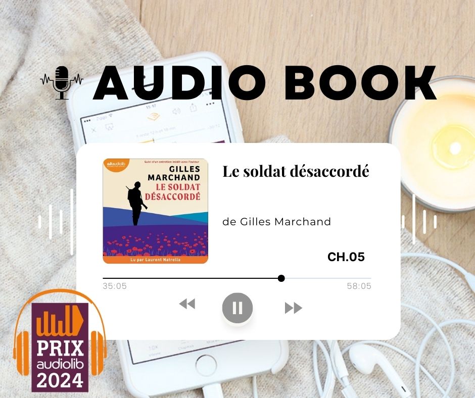 Ce qui est passionnant avec le Prix Audiolib, c’est que chaque année, je découvre de nouveaux auteurs. Gilles Marchand fait partie des découvertes de l’édition 2024. En effet, Le soldat désaccordé, lu par Laurent Natrella, fait partie de la sélection pour le Prix Audiolib 2024.